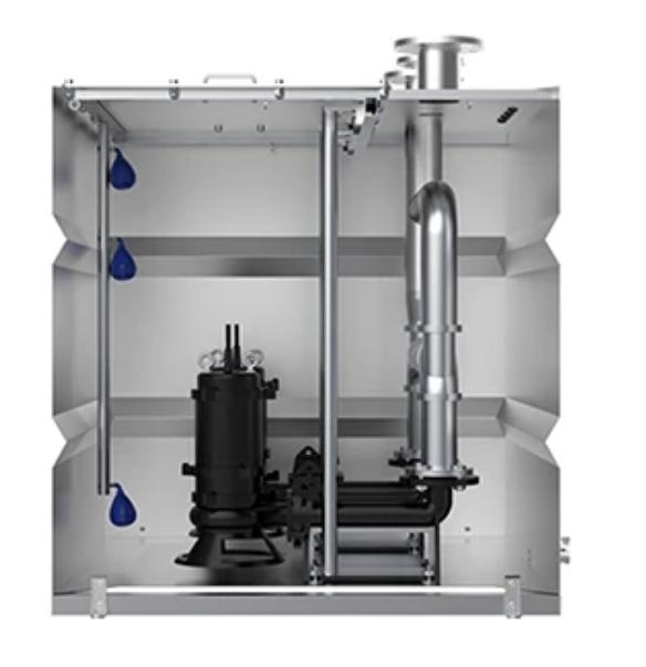 3、固液分離反沖洗型:可以內(nèi)外置(污水提升設(shè)備進(jìn)水前端2套固液分離器,分離進(jìn)水前端液體,通過(guò)集污箱液體反沖出至管道抽排至地上污水井內(nèi)。