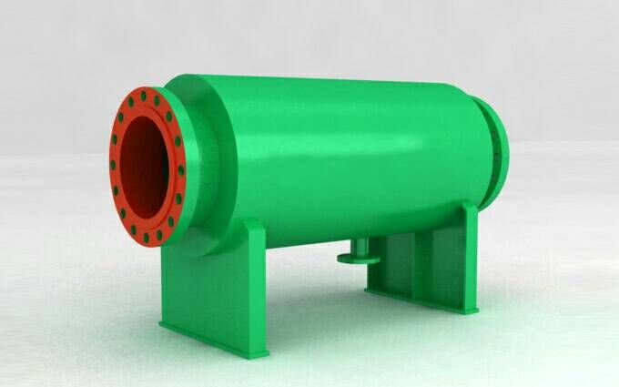 除污器的結(jié)構(gòu)形式按國(guó)家標(biāo)準(zhǔn)圖R406分為臥式直通除污器、臥式角通除污器和立式直通除污器三種形式。本除污器的特點(diǎn)是濾網(wǎng)由原標(biāo)準(zhǔn)圖中規(guī)定的鍍鋅鐵絲網(wǎng)改進(jìn)為專用不銹鋼濾網(wǎng)。在除污器中,水流由進(jìn)水口進(jìn)入筒體,經(jīng)過濾網(wǎng)過濾的水流由出水口流出,污垢則沉降于除污器底部,經(jīng)過排污排出。